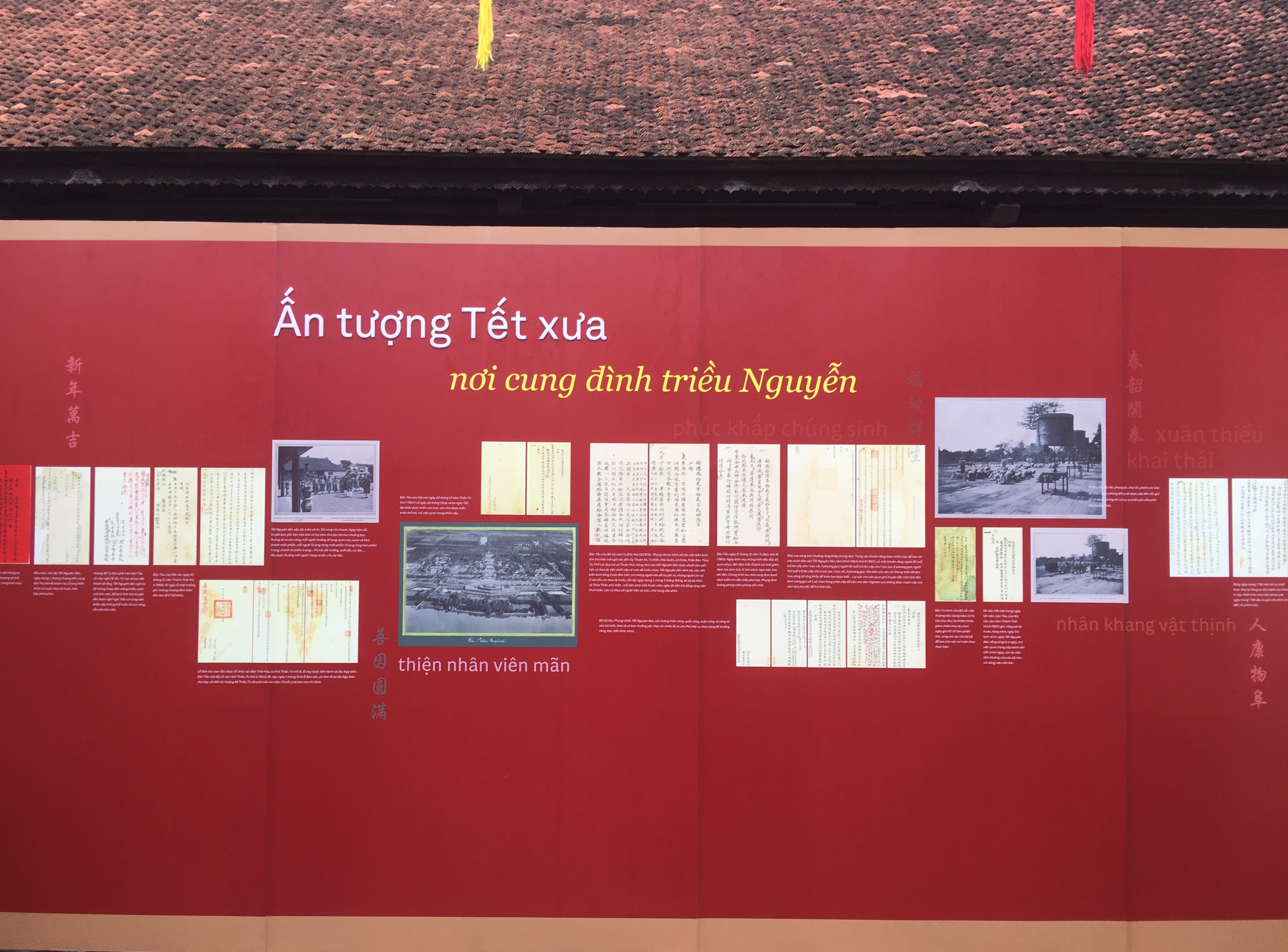 Các hình ảnh, hiện vật tại Triển lãm nhằm giới thiệu về nghi thức đón Tết trong cung đình triều Nguyễn xưa. Dưới triều Nguyễn, Tết Nguyên đán được coi là một trong những lễ tiết lớn nhất trong năm và cung đình đón Tết với nhiều nghi lễ long trọng.