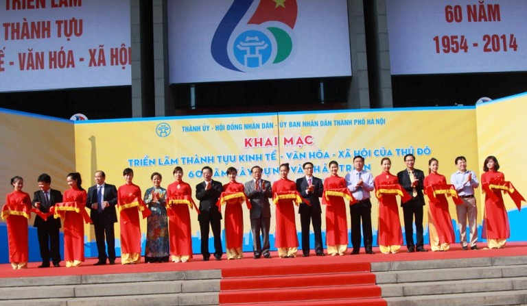 Tới dự có Bí thư thành ủy Hà Nội Phạm Quang Nghị, Phó Thủ tướng Chính phủ Vũ Đức Đam, cùng đại diện Đại sứ quán nhiều nước, các tổ chức nước ngoài tại Hà Nội. Phát biểu khai mạc triển lãm, Chủ tịch Ủy ban nhân dân thành phố Hà Nội Nguyễn Thế Thảo ôn lại những mốc son chói lọi của Thủ đô trong 60 năm xây dựng và phát triển. Ông Nguyễn Thế Thảo nhấn mạnh: “Triển lãm thành giới thiệu khái quát về những thành tựu nổi bật của Hà Nội qua 60 năm xây dựng và phát triển, khơi dậy niềm tự hào về Thủ đô anh hùng, thành phố vì hòa bình, tuyên truyền sâu rộng truyền thống đoàn kết, anh dũng của quân và dân Thủ đô trong đấu tranh bảo vệ Tổ quốc cũng như trong công cuộc xây dựng và phát triển Thủ đô. Đồng thời giới thiệu những tiềm năng phát triển, quảng bá những thương hiệu sản phẩm, thúc đẩy hoạt động xúc tiến đầu tư, thương mại và du lịch”.