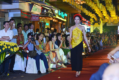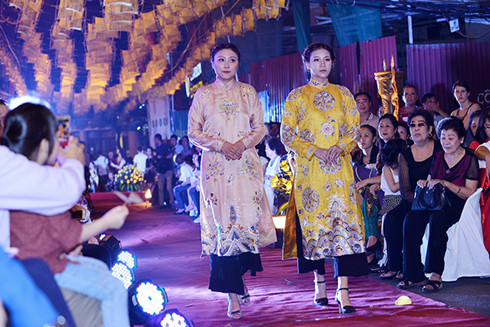 | Những tà áo dài truyền thống được trình diễn trong không gian phố cổ Hà Nội. Ảnh: Thể thao & Văn hóa |