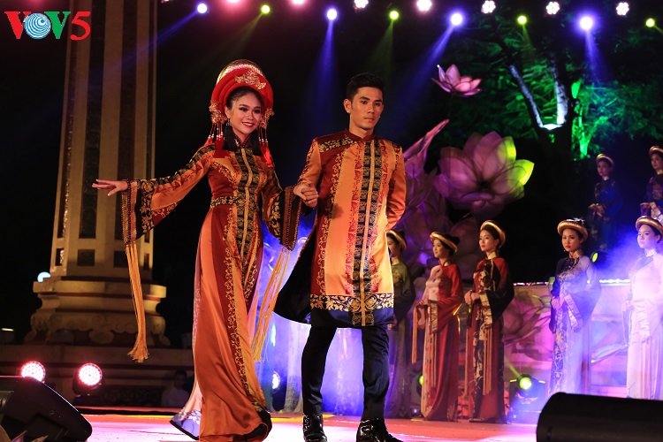 Trong khuôn khổ Festival Huế 2018, đêm trình diễn áo dài “Huế vàng son”, diễn ra tối 1/5, tại sân khấu Bia Quốc học. “ Huế vàng son” là chương trình điểm nhấn tại Festival Huế lần thứ X, là nơi hội tụ các nhà thiết kế áo dài nổi tiếng của cả nước. “Huế vàng son” đưa khán giả quay ngược thời gian để tìm về với lịch sử hình thành và phát triển của áo dài Việt Nam nói chung, áo dài truyền thống Huế nói riêng.