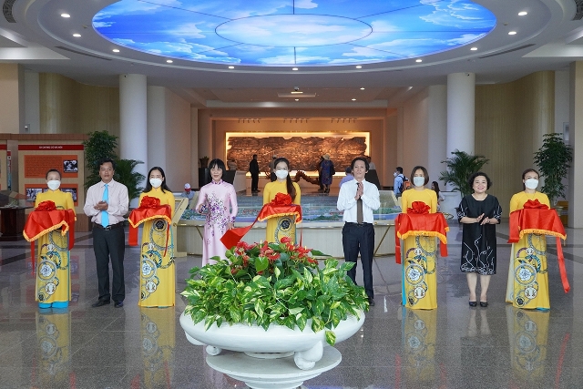 Các đại biểu cắt băng khai mạc trưng bày. Ảnh:baodantoc.vn |
