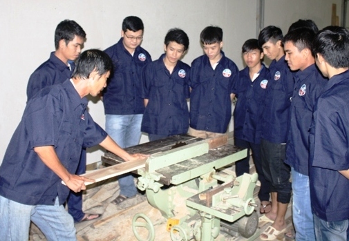 | Các học sinh trong giờ học nghề mộc |