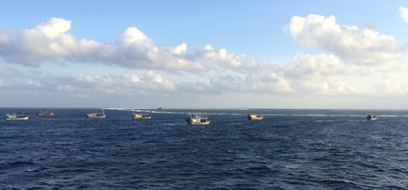 | Các tàu cá đang neo trú tại đảo chìm Đá Nam |