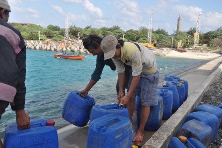 | Cung cấp miễn phí nước ngọt cho ngư dân khi đến đảo |