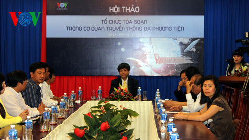 Phát biểu khai mạc tại hội thảo “Tổ chức tòa soạn trong cơ quan truyền thông đa phương tiện”, ông Vũ Hải, Phó Tổng Giám đốc Đài TNVN nhấn mạnh: Sự chia sẻ thông tin, nguyên lý 1 đầu vào, nhiều đầu ra đã và đang được các cơ quan báo chí tận dụng tối đa để đáp ứng cao nhất nhu cầu thông tin đa dạng của công chúng trong xã hội. Trong điều kiện đó, sự phát triển các kỹ năng đa phương tiện của các nhà báo, phóng viên là một nhu cầu phát triển tự thân để tránh khỏi bị đào thải trong cạnh tranh nghề nghiệp. Do đó, tôi tin tưởng rằng hội nghị này với nội dung tập trung trao đổi kinh nghiệm làm việc trong môi trường truyền thông đa phương tiện, cách thức xây dựng và quản lý nội dung sẽ mang lại nhiều thông tin và kinh nghiệm quý báu cho các nhà báo trên phạm vi cả nước. Song song với hội thảo vừa nêu, đông đảo đại biểu cũng đã tham dự Hội thảo “Công nghệ mới trong kỷ nguyên phát thanh số”. Nhiều nội dung thiết thực, bổ ích trong sử dụng công nghệ mới vào công tác quản lý, biên tập, sản xuất chương trình, truyền dẫn, phát sóng… đã được đề cập tại hội thảo này.