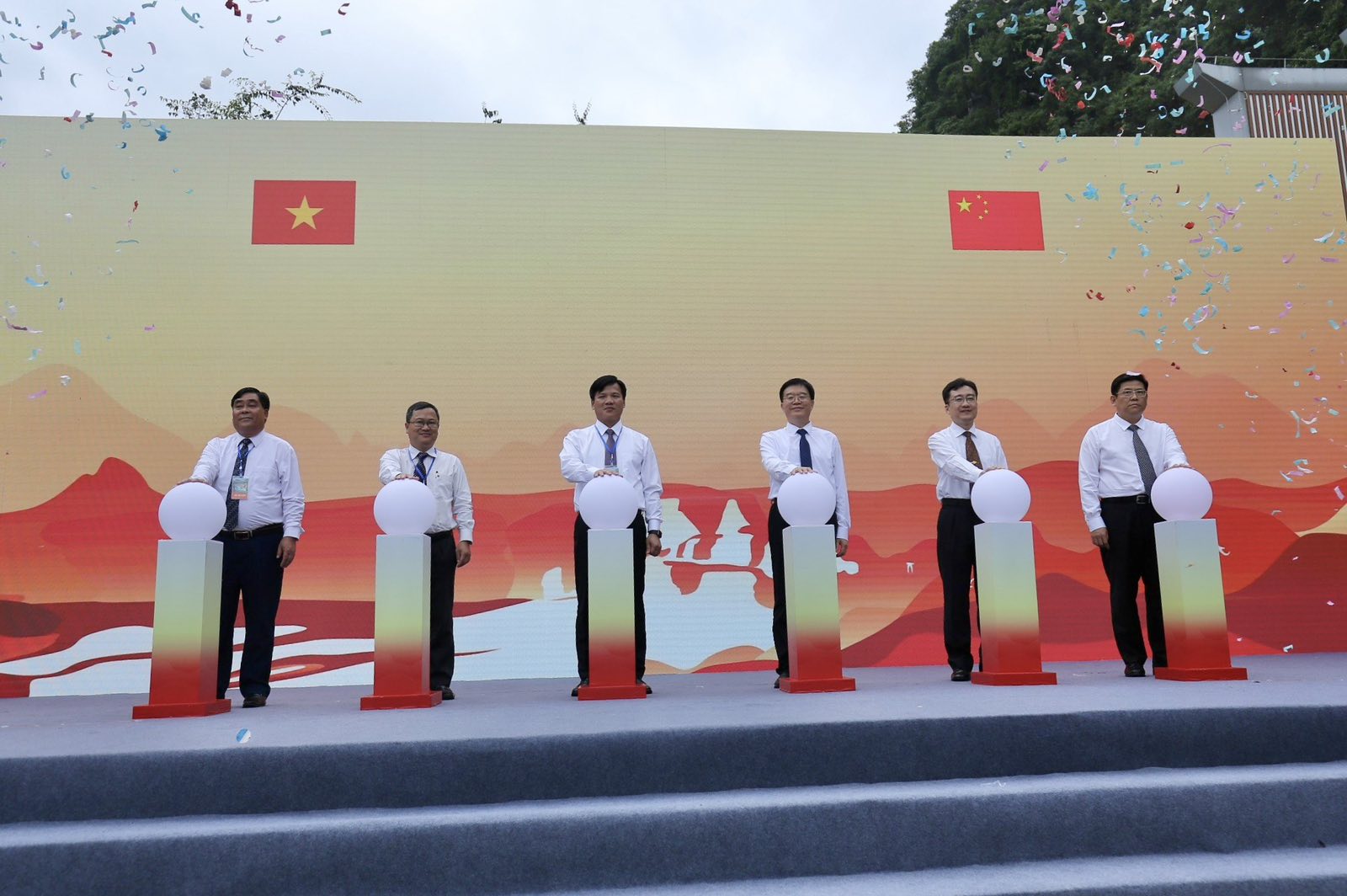 Bấm nút vận hành thí điểm cho du khách qua lại cảnh quan Thác Bản Giốc (Việt Nam) và Đức Thiên (Trung Quốc). Ảnh: VOV |