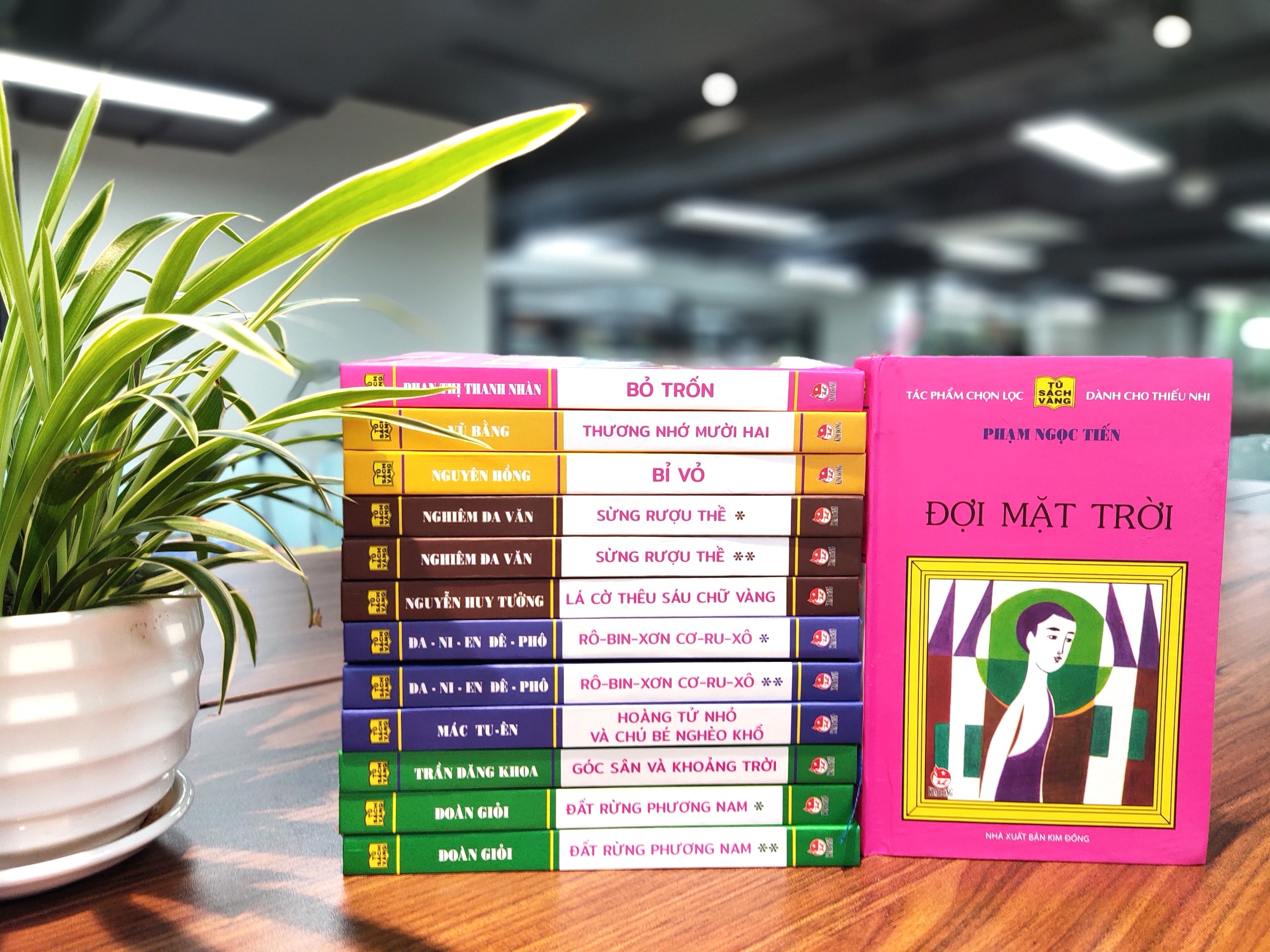Truyện dài “Đợi mặt trời” của nhà văn Phạm Ngọc Tiến là tác phẩm đoạt giải A trong cuộc vận động sáng tác do NXB Kim Đồng tổ chức năm 1993 – 1995, là cuốn sách đầu tiên được gắn logo Tủ sách Vàng. Cùng đoạt giải A trong cuộc vận động sáng tác năm đó là truyện dài “Bỏ trốn” của nhà thơ Phan Thị Thanh Nhàn. Nếu “Đất rừng phương Nam” là một trong những tác phẩm văn học được nhà văn Nguyễn Huy Tưởng “đặt hàng” cho NXB Kim Đồng, ra mắt ngay trong năm đầu tiên thành lập Nhà xuất bản (năm 1957), thì “Lá cờ thêu sáu chữ Vàng” là tác phẩm cuối cùng, với bao tâm huyết của nhà văn Nguyễn Huy Tưởng, được ông hoàn thành trên giường bệnh (năm 1960).