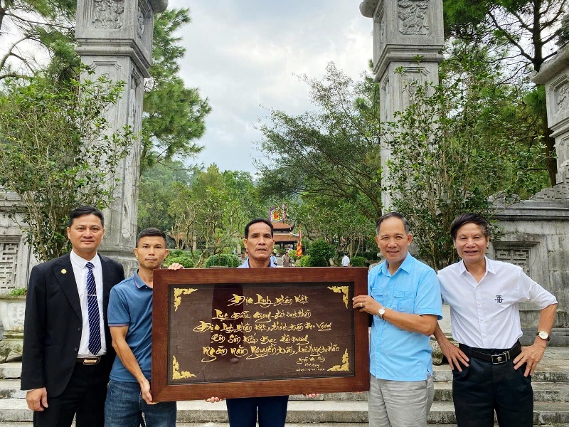 Trong buổi lễ dâng hương, Câu lạc bộ Văn hoá Nghệ thuật – tài năng trẻ Đoàn Thị Điểm vinh dự trao bài thơ “Địa Linh Nhân Kiệt” cho lãnh đạo khu di tích.
