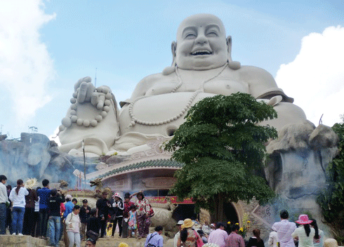 | Tượng Phật Di Lặc trên núi Cấm được Tổ chức Kỷ lục châu Á xác lập kỷ lục châu Á. Ảnh: Duy Khang |