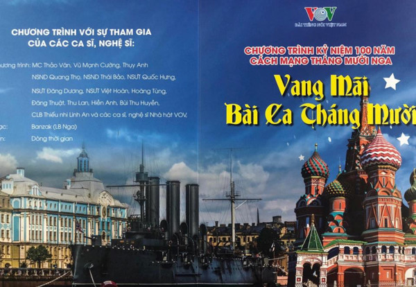 Kỷ niệm “100 năm Cách mạng tháng Mười Nga”, tối 29/10, tại Cung Văn hóa hữu nghị Hà Nội, Đài Tiếng nói Việt Nam phối hợp với Đại sứ quán Liên bang Nga tổ chức đêm giao lưu- nghệ thuật chủ đề “Vang mãi bài ca Tháng Mười”.