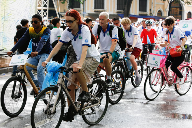 Các đại biểu Việt Nam và nước ngoài tham gia Hành trình xe đạp Xanh |
