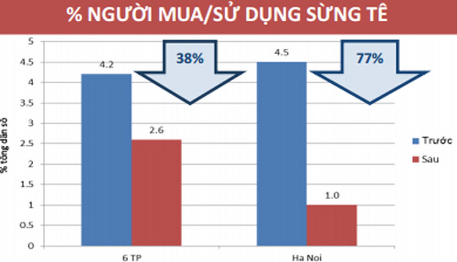 | Biểu đồ cho thấy số người mua và sử dụng sừng tê giác ở Việt Nam và ở Hà Nội đã giảm (Nguồn: CITES Việt Nam) |