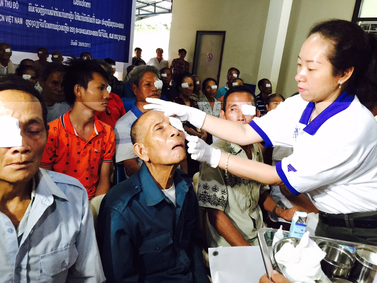 Đoàn công tác của Bệnh viện mắt TP HCM do Phó giáo sư, tiến sỹ, Bác sỹ Trần Anh Tuấn- Giám đốc Bệnh viện mắt TP Hồ Chí Minh cùng hơn 20 bác sĩ chuyên khoa mắt đã tiến hành khám sàng lọc, chữa và mổ mắt miễn phí cho các bệnh nhân là cựu chiến binh, gia đình cựu chiến binh và người nghèo, ước khoảng 200 bệnh nhân sẽ được phẫu thuật trong đợt này, đa phần là những bệnh nhân đã không còn nhìn được. Ông Trần Anh Tuấn cho biết, hiện mới có khoảng 100 bệnh nhân thôi, đây là những ca khó vì bệnh nhân phần lớn đục thủy tinh thể từ lâu: "Chúng tôi sang đây đem theo máy móc và các dụng cụ hiện đại, kỹ thuật cao, thủy tinh thể, vật liệumổ cao cấp để phục vụ cho bà con, còn số vật tư còn lại chúng tôi tặng lại cho bệnh viện. Ngoài mục đích mổ cho người nghèo chúng tôi còn muốn giao lưu với đồng nghiệp Lào ở bệnh viện mắt trung ương để trao đổi về kỹ thuật mổ, cũng như có hợp tác về lâu dài như đào tạo cho phẫu thuật viên Lào. Hiện tại ở đây có có 9 bác sỹ trẻ, chúng tôi sẽ bàn với bệnh viện để giúp đỡ đào tạo 9 người này trở thành phẫu thuật viên giỏi trong tương lai."