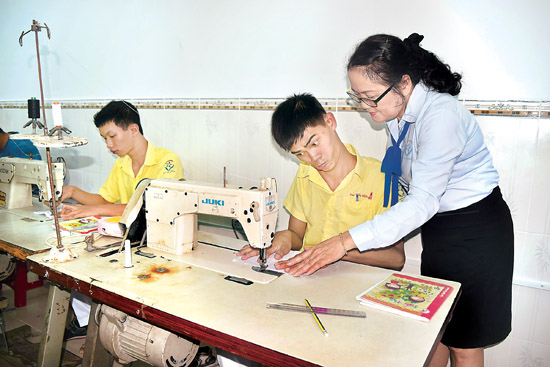 | Đào tạo nghề cho người khuyết tật (Ảnh: baoquangngai.vn) |