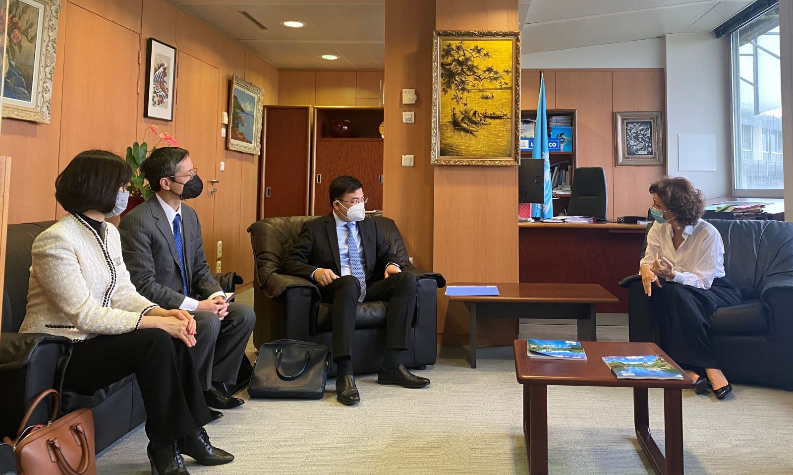 Bà Tổng Giám đốc UNESCO Audrey Azoulay tiếp Đoàn Việt Nam. Ảnh: TTXVN |