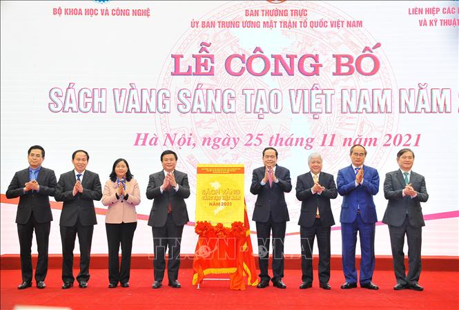 Chiều 25/11, tại Hà Nội, Ban Thường trực Ủy ban Trung ương Mặt trận Tổ quốc Việt Nam phối hợp với Bộ Khoa học và Công nghệ, Liên hiệp các Hội Khoa học và Kỹ thuật Việt Nam tổ chức Lễ công bố Sách vàng Sáng tạo Việt Nam năm 2021.