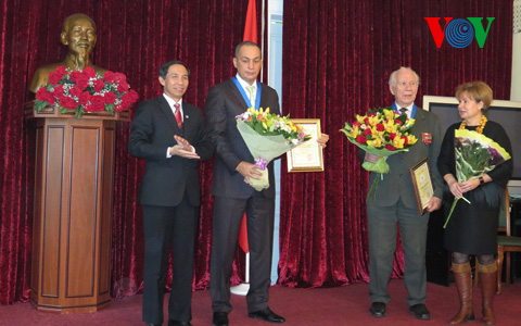 | Trao tặng Danh hiệu Công dân Danh dự Thủ đô Hà Nội cho 2 công dân Nga (Ảnh: Điệp Anh, Đoan Hải/VOV-LB Nga) |