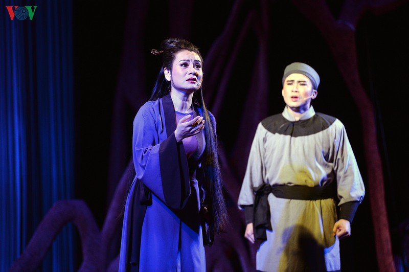 Vở kịch hát "Ngàn năm mây trắng" công diễn tại Nhà hát Lớn Hà Nội. Đây là tác phẩm của Nhà hát Đài TNVN tham dự Tại LH Quốc tế sân khấu thử nghiệm lần 4 |