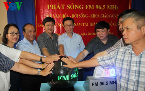 | Các đại biểu ấn nút phát sóng Hệ VOV2 trên sóng FM 96.5 MHz |