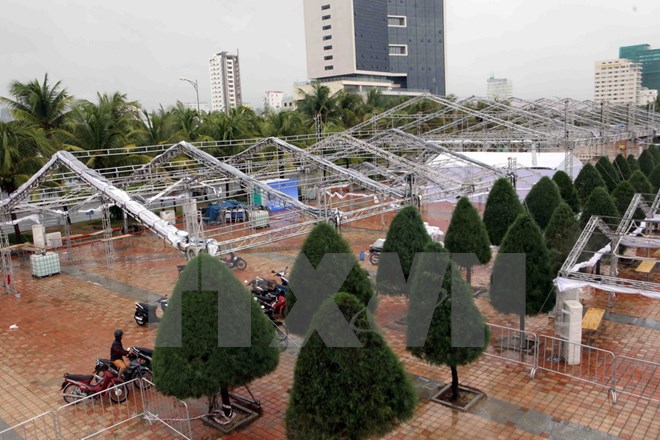 | Đà Nẵng triển khai các biện pháp phòng, chống bão cho các công trình phục vụ ABG5 tại các bãi biển. (Nguồn: TTXVN) |