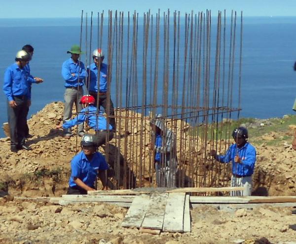 | Thanh niên Quảng Ngãi thi công cột cờ trên đảo Lý Sơn - Ảnh: V.Mịnh/ Báo Tuổi trẻ |