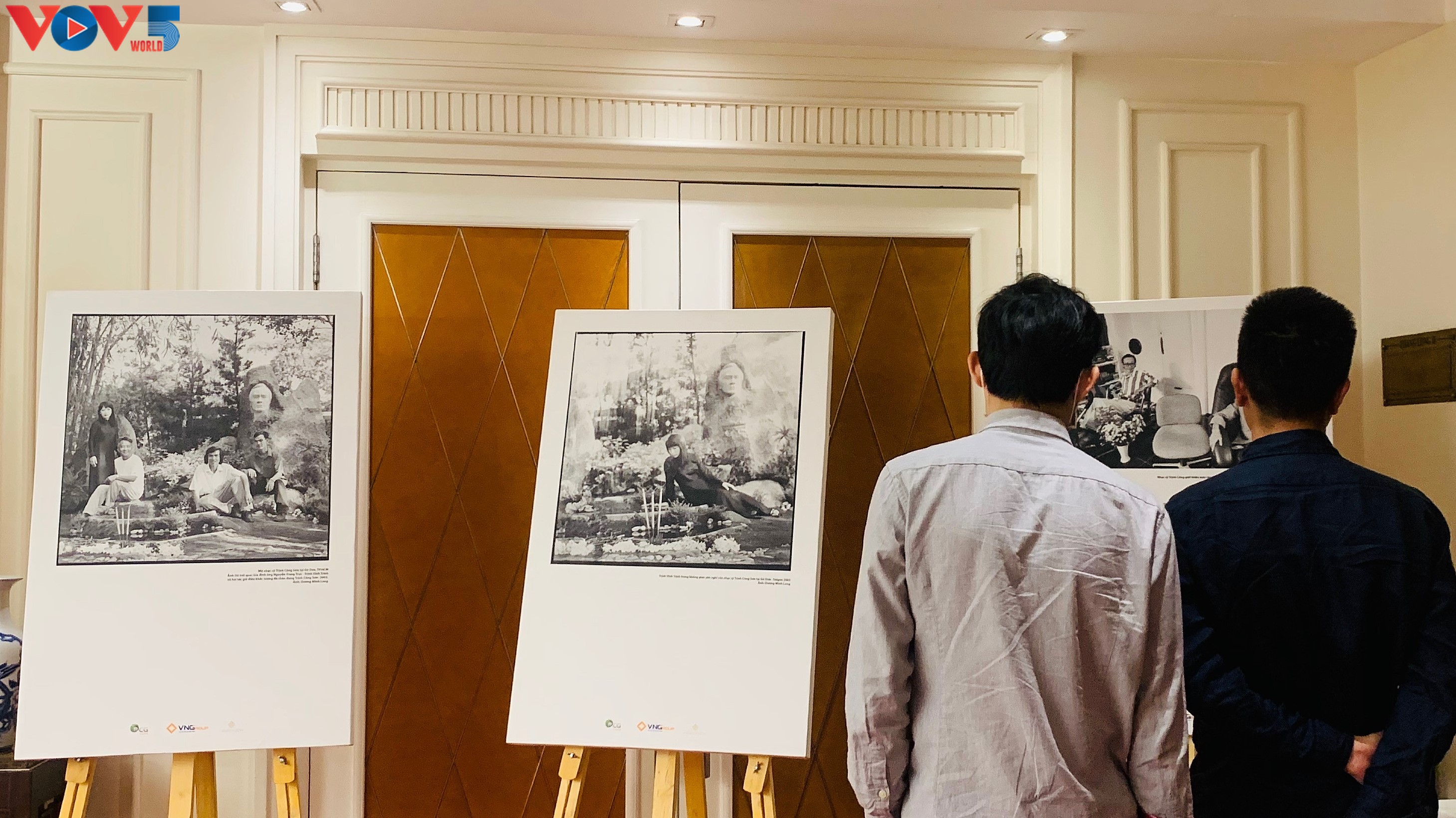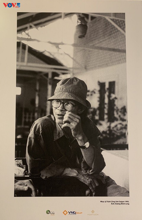 Một góc không gian trưng bày ảnh tư liệu về Trịnh Công Sơn của nhiếp ảnh gia Dương Minh Long tại buổi lễ. |