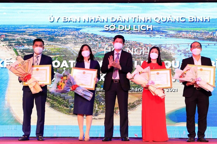 Phó Chủ tịch UBND tỉnh Quảng Bình Hồ An Phong trao tặng bằng khen cho các cá nhân, tập thể có thành tích trong công tác phát triển du lịch. Ảnh: H.L/ laodong.vn |