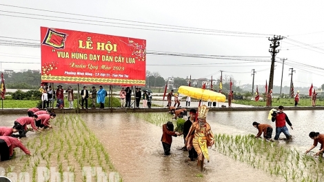 Sôi nổi Lễ hội Vua Hùng dạy dân cấy lúa