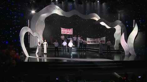 (VOV5) - Bức rèm thêu họa tiết Rồng do nghệ nhân Vũ Văn Giỏi thể hiện bằng kỹ thuật thêu tay cung đình vô cùng tinh xảo, được trang trí trên chiếc thuyền Kiệu Ofunehoko trong Lễ hội Gion - một trong những lễ hội lớn nhất Nhật Bản.