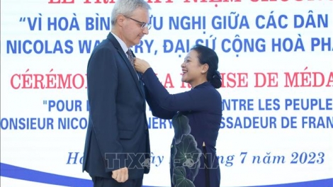 Trao Kỷ niệm chương “Vì hòa bình, hữu nghị giữa các dân tộc” tặng Đại sứ Pháp tại Việt Nam