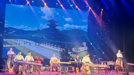 (VOV5) - Tại chương trình, các đại biểu được thưởng thức các tiết mục âm nhạc truyền thống đặc sắc do các nghệ sĩ khiếm thị Dàn nhạc Hàn Quốc và Ban nhạc Nắng mới của Hội người mù Việt Nam biểu diễn.