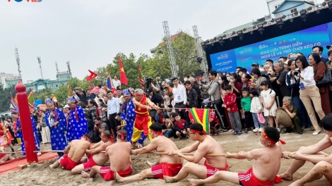 (VOV5) - Tại đền Trấn Vũ sáng 16/11, lễ hội kéo co kỷ niệm 10 năm được UNESCO ghi danh diễn ra sôi nổi, quy tụ các cộng đồng thực hành di sản khắp miền Bắc trong không khí đoàn kết, náo nhiệt.