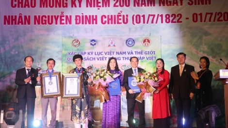 Trao kỷ lục Việt Nam và kỷ lục thế giới quyển sách thư pháp “Nguyễn Đình Chiểu thi tuyển“