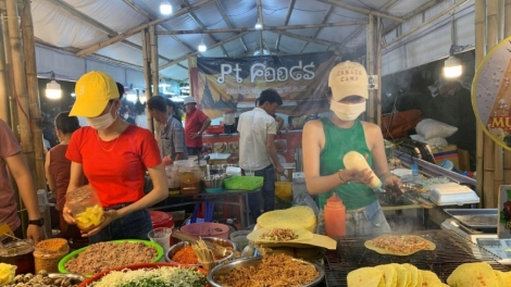 (VOV5) - Lễ hội quy tụ 35 gian hàng và hơn 100 món ăn dân dã, mang đậm hương vị đặc trưng như: bún thịt nướng, bánh cuốn Kim Long, cơm bún hến...