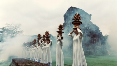 (VOV5) - Chương trình được biểu diễn ngay trong lòng Di sản Văn hóa thế giới Mỹ Sơn, sân khấu chính là đền tháp.