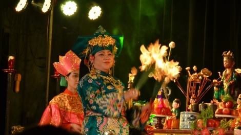 (VOV5) - Thực hành tín ngưỡng Thờ Mẫu Tam phủ của người Việt với nghi lễ hầu đồng là hình thức diễn xướng tâm linh thường diễn ra ở các điện, đền, phủ.