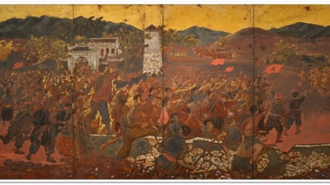 (VOV5) - Triển lãm giới thiệu 18 bức tranh sơn dầu, sơn mài, lụa, bột màu, khắc gỗ… của 15 tác giả và nhóm tác giả.