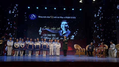 (VOV5) - Tối 12/1, Đài Tiếng nói Việt Nam tổ chức Chương trình gặp gỡ “Cây đại thụ và cánh én tuổi thơ” nhân kỷ niệm sinh nhật 91 tuổi của Nhạc sĩ Phạm Tuyên.
