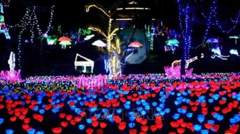 (VOV5) - Chương trình Đêm Đà Lạt lung linh ánh sáng với khoảng 20 mô hình trang trí bằng khung sắt để tạo hiệu ứng ánh sáng nghệ thuật.