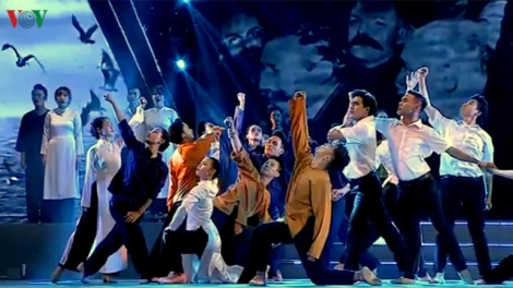 (VOV5) - Chương trình được dàn dựng công phu, biểu diễn tại sân khấu ngoài trời, kết hợp với hiệu ứng âm thanh, ánh sáng hiện đại.