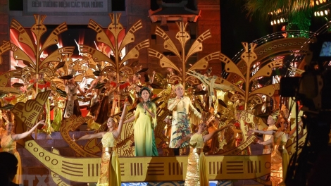 (VOV5) - Các tiết mục trình diễn tại chương trình đều tập trung ca ngợi công đức các Vua Hùng, giới thiệu, quảng bá di sản văn hóa, cảnh sắc, thiên nhiên con người quê hương Đất Tổ.