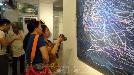 (VOV5) - Triển lãm giới thiệu 42 tác phẩm hội họa, gốm điêu khắc của 5 họa sĩ Pháp và 14 họa sĩ, nghệ sĩ Việt Nam.