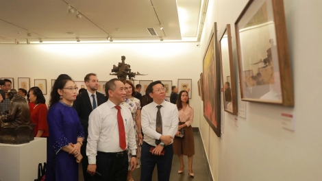 (VOV5) - Triển lãm giới thiệu 80 tác phẩm mỹ thuật tiêu biểu, sáng tác trong giai đoạn 1947 - 1986, thuộc nhiều chất liệu: sơn dầu, sơn mài, lụa, giấy, gỗ, thạch cao…