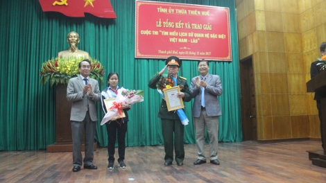 (VOV5) - Dịp này, Ban Tổ chức Cuộc thi "Tìm hiểu lịch sử quan hệ đặc biệt Việt Nam - Lào" tỉnh Thừa Thiên - Huế đã khen thưởng 5 tập thể, 15 cá nhân.