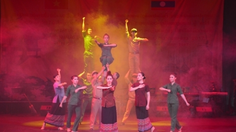 (VOV5) - Tại thủ đô Vientiane, Lào, diễn ra chương trình biểu diễn nghệ thuật của Đoàn văn công Quân khu 7 Quân đội nhân dân Việt Nam.