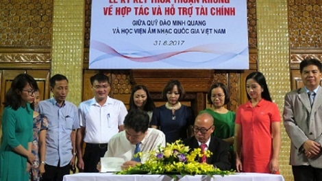 (VOV5) - Theo thỏa thuận ký kết, hàng năm Quỹ sẽ trao giải thưởng mang tên “Giải thưởng Quỹ Đào Minh Quang” cho 8 sinh viên Thủ khoa trong kỳ thi đầu ra của các Khoa chuyên ngành tại Học viện Âm nhạc Quốc gia Việt Nam.