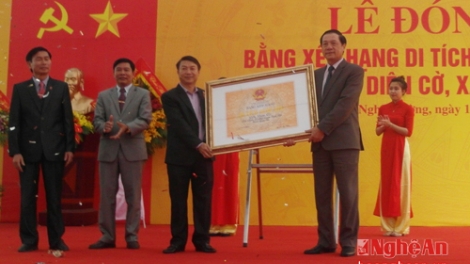 Lễ đón nhận bằng di tích quốc gia đền Diên Cờ ở huyện Nghi Lộc, tỉnh Nghệ An