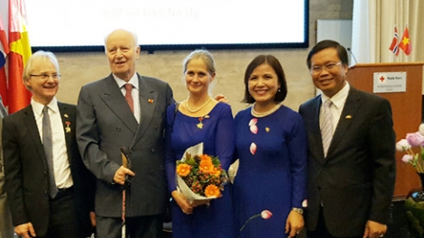 (VOV5) - Đại sứ quán Việt Nam tổ chức lễ trao tặng Huân chương Hữu nghị cho ông Thorvald Stoltenber, cựu Bộ trưởng Ngoại giao; Bộ trưởng Quốc phòng và một số bạn bè Na Uy, vì đã có những đóng góp tích cực vào việc thiết lập, củng cố và phát triển quan hệ hữu nghị giữa Việt Nam và Na Uy.