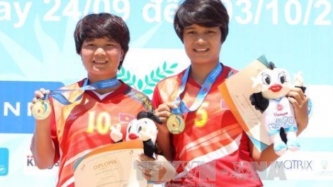 (VOV5) - Đội tuyển cầu mây nữ mang về tấm huy chương vàng đầu tiên cho đoàn thể thao bãi biển Việt Nam trong ngày thi đấu thứ 3.