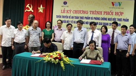 (VOV5) - Ngày 14/6, tại Hà Nội, Bộ trưởng Bộ Y tế Nguyễn Thị Kim Tiến và Tổng Giám đốc Đài Tiếng nói Việt Nam Nguyễn Thế Kỷ ký kết chương trình phối hợp tuyên truyền về an toàn thực phẩm và phòng chống ngộ độc thực phẩm giai đoạn 2016 - 2020.